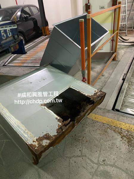 > 西屯路二段麗緻逢甲--地下室B2-24號車位排風機出風口風管鏽蝕更換風管工程1140220
